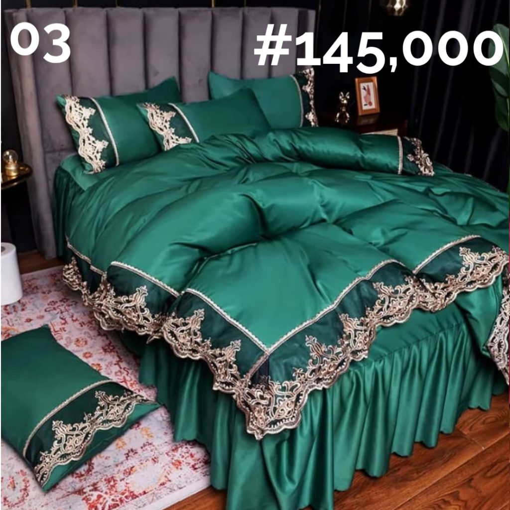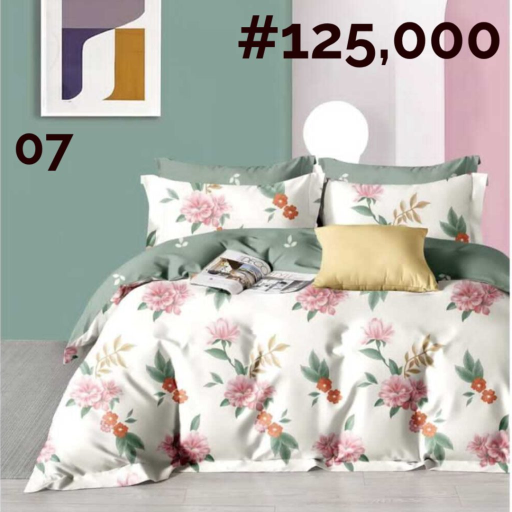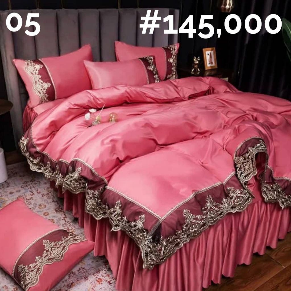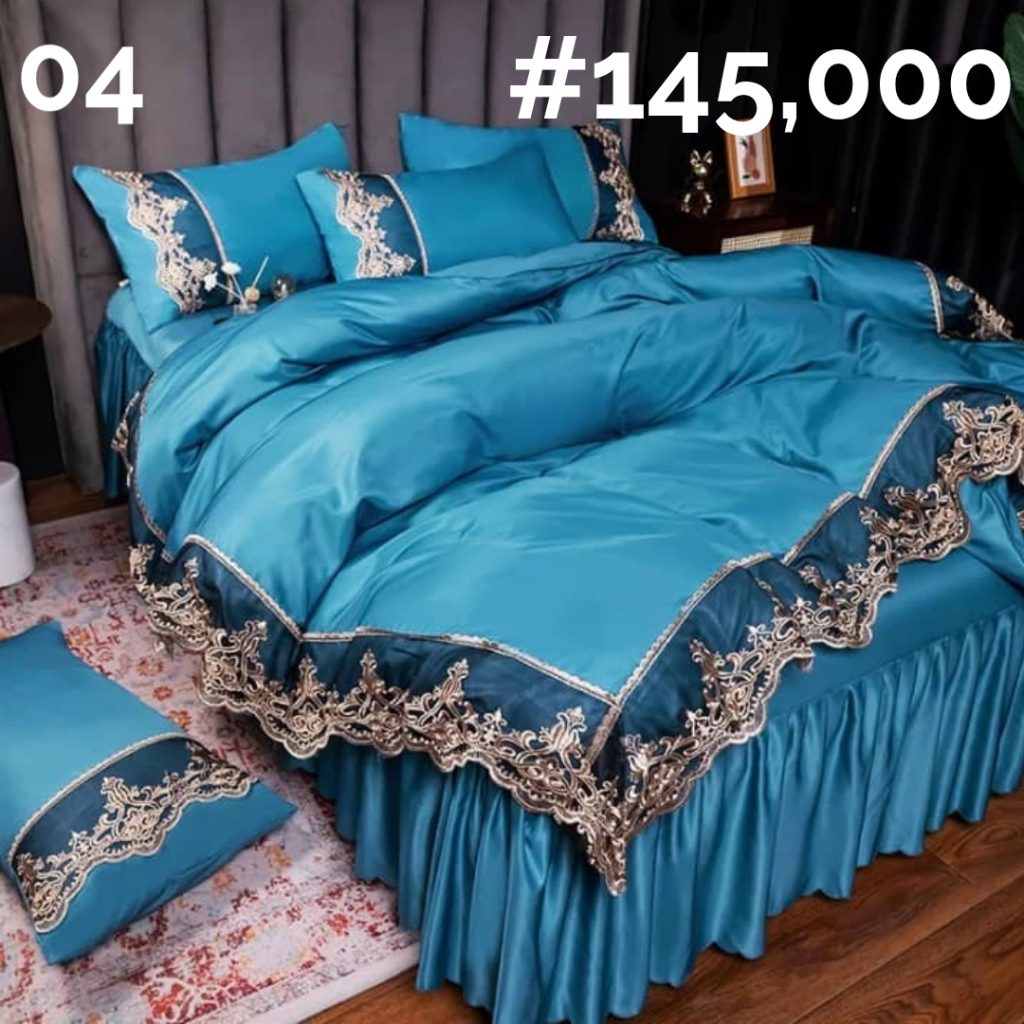 Full sets include, (1) 6by7 duvet. (2) 6by7 bed sheet. (3) 4 pillow cases. (4) 1pcs floor mat.